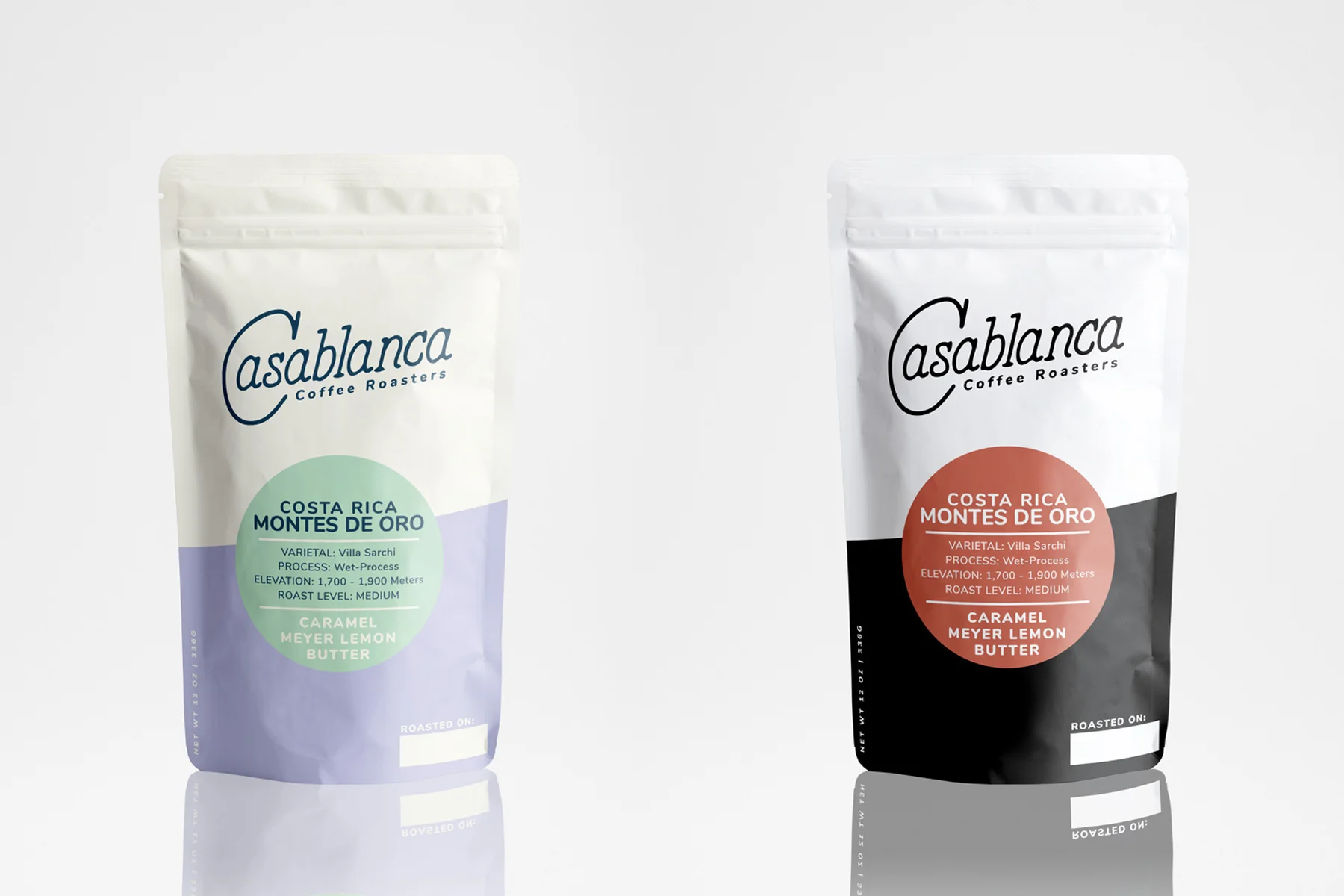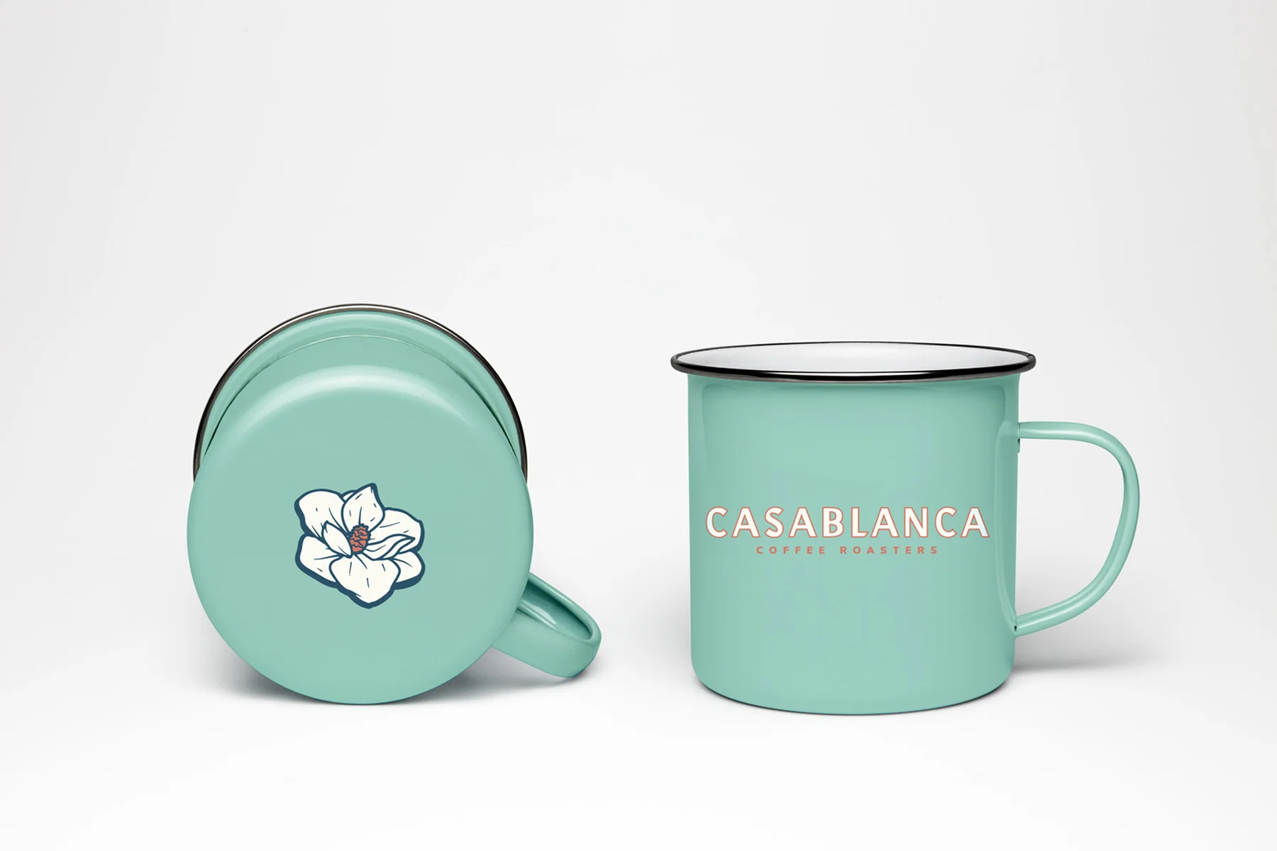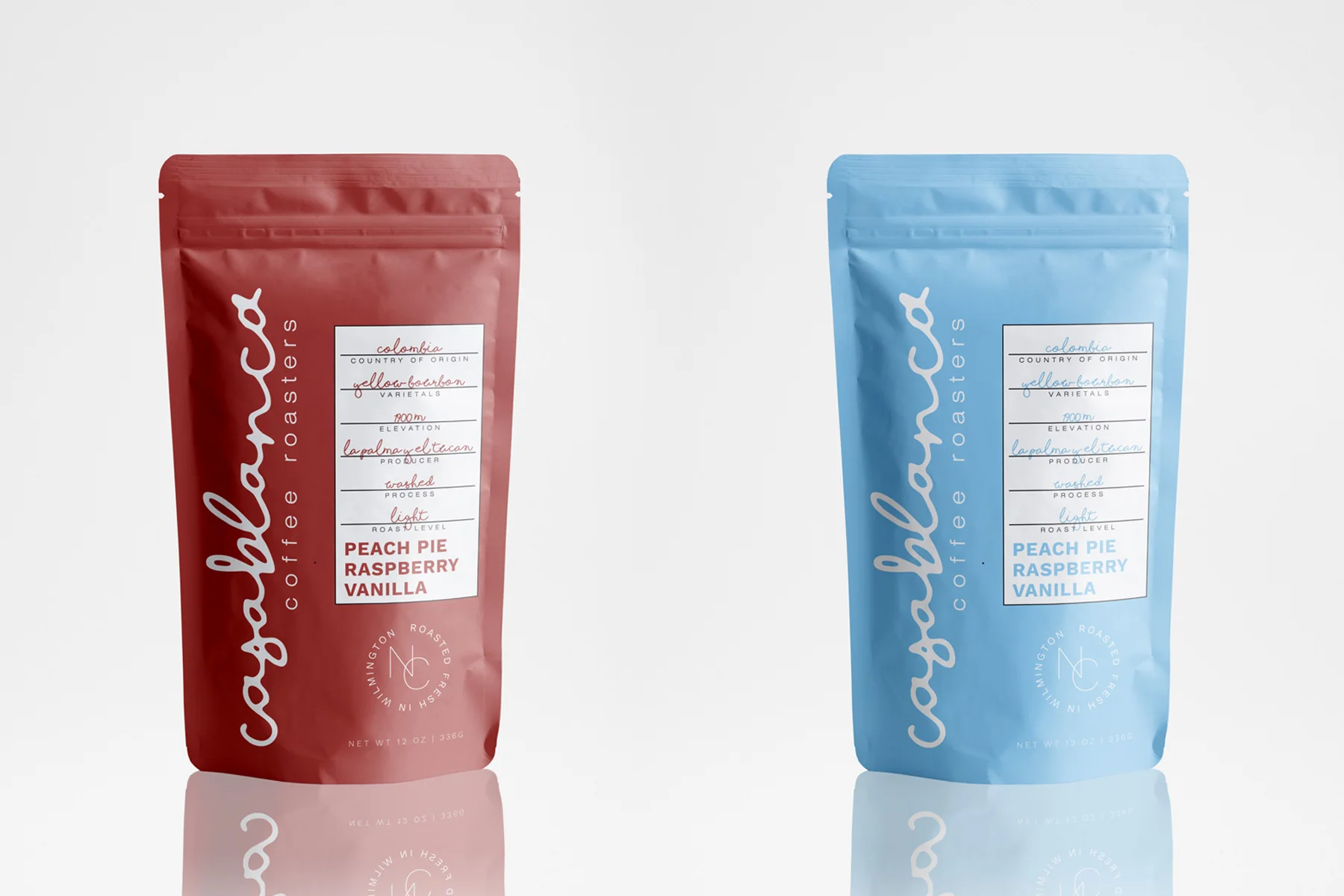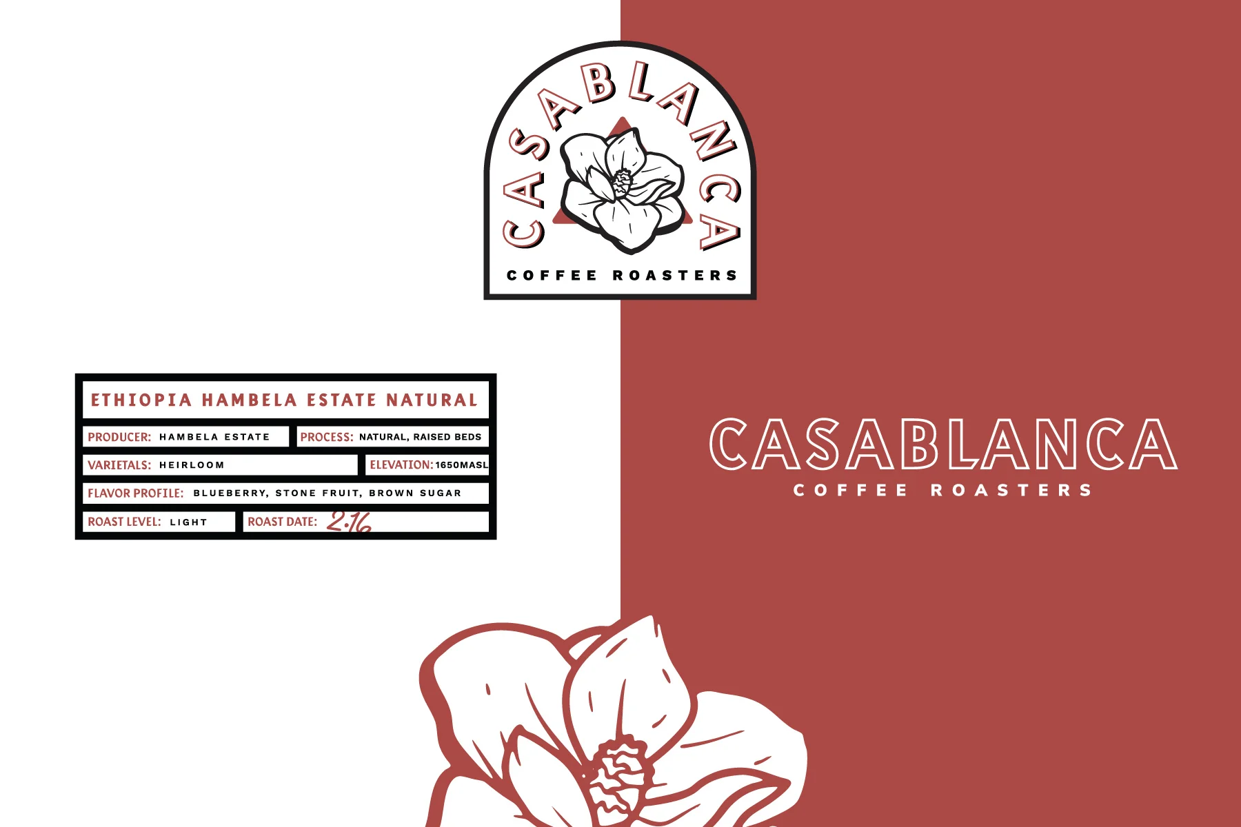 Brand identity and packaging concepts for Wilmington, NC coffee roasters Casablanca. The project brief included a strong desire to tie the physical space of the roasting facility and cafe into the brand identity, and have the coffee bags “live” seamlessly within the space. Details considered were the red brick and Guatemalan tile of the cafe interior, the archways leading into the building, and the magnolia trees that covered the stand-alone property.